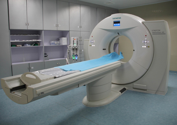 我院近期新引進(jìn)一臺(tái)德國(guó)產(chǎn)西門(mén)子 SOMATOM Definition AS 64排128層CT,已正式投入使用。西門(mén)子128層CT機(jī)具有64排探測(cè)器、128個(gè)數(shù)據(jù)通道,掃描一圈可成像128層。機(jī)器采用磁懸浮機(jī)架驅(qū)動(dòng)技術(shù),360度掃描僅需0.33秒,空間分辨率達(dá)到30線對(duì)/厘米,Z軸分辨率為0.33毫米。該機(jī)是目前最先進(jìn)的CT機(jī)型之一,具有業(yè)界最快的掃描速度和最高的空間分辨率。