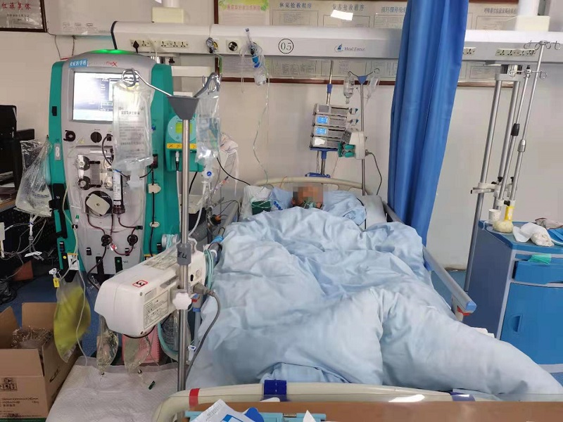 患者蘇某,男性,65歲,2月6日凌晨因“服磷化鋁5片后15小時”由環(huán)縣120轉運至我院重癥醫(yī)學科,入院時嗜睡,精神差,呈中毒性休克狀態(tài),APACHE II評分30分,內(nèi)環(huán)境嚴重紊亂,血乳酸持續(xù)>15mmol/L,病情危重。且該患者系三無人員,無人繳納住院費用。值班醫(yī)生柳志清請示醫(yī)院行政總值班和上級醫(yī)師后,立即予以搶救治療,行持續(xù)床旁血液透析濾過治療清除毒素,維護內(nèi)環(huán)境,保護臟器功能。經(jīng)過兩周時間的綜合治療,患者病情好轉,聯(lián)系當?shù)剜l(xiāng)政府后,2月21日已由村委會派人接回。