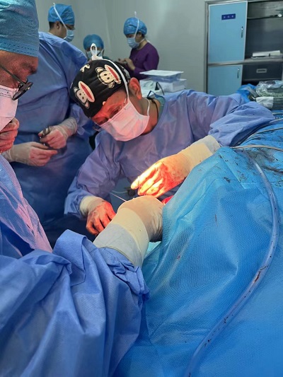 近日,我院外一科、骨傷三科、重癥醫(yī)學(xué)科等多學(xué)科聯(lián)合成功搶救一例多發(fā)傷危重癥患者。10月28日,患者石某因外傷后頭痛、腹痛及雙下肢出血急診入院,入院時呈深昏迷狀態(tài),GSC(格拉斯哥昏迷評分法)評分僅有3分,入院診斷為創(chuàng)傷性顱內(nèi)出血、閉合性顱腦損傷特重型、創(chuàng)傷性脾破裂、開放性脛腓骨骨折,多項指標(biāo)嚴重異常,生命垂危。重癥醫(yī)學(xué)科權(quán)剛主任查看病人后,立即邀請外一科、骨傷三科聯(lián)合搶救,經(jīng)討論,計劃先行“脾切除術(shù)”,消除出血源頭,輸血糾正休克,隨后清除顱內(nèi)血腫,緩解患者顱內(nèi)壓力,最后行“雙下肢開放性骨折復(fù)位固定”。