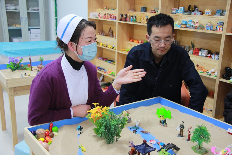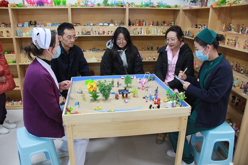 “這不是什么藝術(shù)比賽,沒關(guān)系,可以自由發(fā)揮,任意移動沙子,任意擺放沙具,做成你想要的場景,建立一個專屬于自己的小世界……”在市中醫(yī)醫(yī)院神志病科特色治療室,一場心理沙盤游戲正在進行,游戲參與者發(fā)揮想象力,用一件件生動的微縮模型在沙盤內(nèi)“描繪”著自己的內(nèi)心世界,在護士長李亞琴、護士白淑慧的引導(dǎo)下,大家敞開心扉,暢所欲言,訴說著內(nèi)心的真實想法。