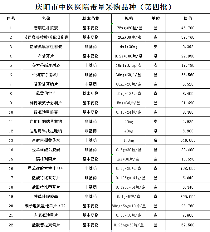 慶陽市中醫(yī)醫(yī)院第五批帶量采購品種