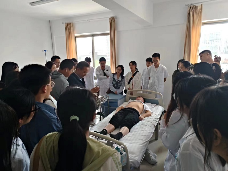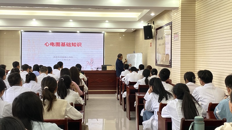 心病科姚鵬飛為大家講授了《心電圖基礎(chǔ)知識(shí)》,從電傳導(dǎo)總原則、心室復(fù)極等方面詳細(xì)講解,并帶領(lǐng)學(xué)員在實(shí)訓(xùn)室進(jìn)行了模擬演練。