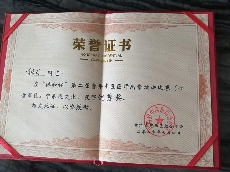 7月4日,第二屆“協(xié)和杯”青年中醫(yī)醫(yī)師病案演講活動(甘青賽區(qū))在蘭州舉辦,我院脾胃肝膽病科青年醫(yī)師李宏哲在王正國主任醫(yī)師全程指導(dǎo)下,經(jīng)過兩個月精心準(zhǔn)備,在比賽中表現(xiàn)突出,獲得優(yōu)秀獎。