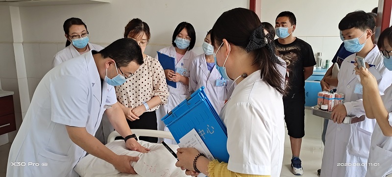 授牌儀式結(jié)束后,魏清琳教授和秦曉光副教授分別作了題為《火針技術(shù)臨床應(yīng)用》、《鄭氏針法補(bǔ)瀉學(xué)術(shù)思想內(nèi)涵》的學(xué)術(shù)講座。汪龍德院長帶隊在門診大廳進(jìn)行義診活動,現(xiàn)場為200多名患者進(jìn)行了沖擊波、推拿按摩、穴位貼敷和消定膏貼敷等治療。秦曉光副教授在針灸推拿科進(jìn)行教學(xué)查房,現(xiàn)場演示了鄭氏傳統(tǒng)針刺手法。