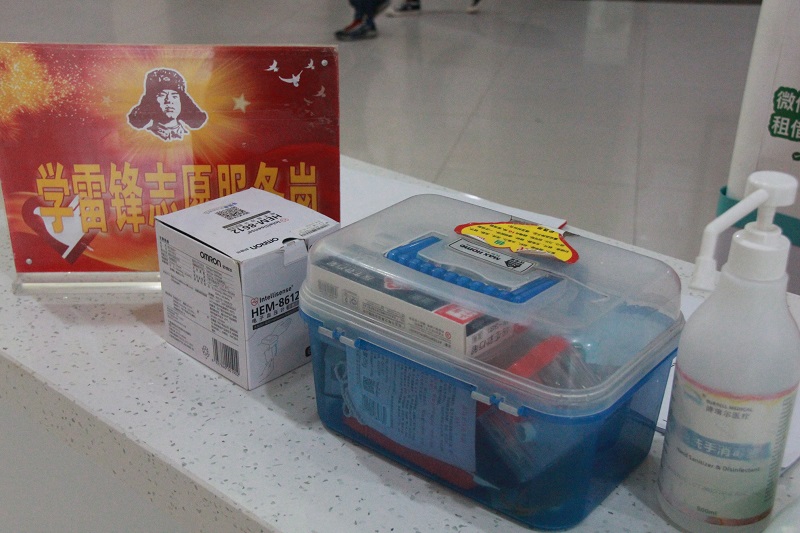 門診大廳導(dǎo)醫(yī)臺的旁邊,一件鮮艷的紅馬甲格外亮眼,一名志愿者正在為前來咨詢的群眾指導(dǎo)如何進行線上掛號。這里是市中醫(yī)醫(yī)院設(shè)置的雷鋒志愿者服務(wù)站,能夠為群眾提供針線、膠水、雨傘等便民小物品,還可以為老年體弱、行動不便的患者提供輪椅、平車等服務(wù)。