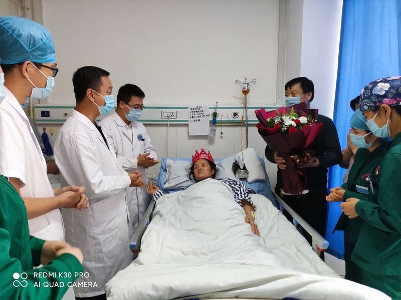 9月17日,市中醫(yī)醫(yī)院重癥醫(yī)學(xué)科收住的一例重度有機(jī)磷農(nóng)藥中毒患者經(jīng)積極救治,轉(zhuǎn)危為安,患者和家屬都非常激動(dòng)。當(dāng)天正值患者生日,為鼓勵(lì)患者提升戰(zhàn)勝疾病的信心,重癥醫(yī)學(xué)科全體醫(yī)護(hù)人員為患者購(gòu)買了鮮花,祝福她生日快樂。重癥醫(yī)學(xué)科主任權(quán)剛親切地對(duì)患者說(shuō)“祝你生日快樂,你有一個(gè)悉心呵護(hù)你的丈夫,有兩個(gè)乖巧懂事的女兒,等你康復(fù)出院了,以后的每天都是生日。”患者及家屬都流下了感動(dòng)的淚水,表示一定配合治療,盡早康復(fù)出院。