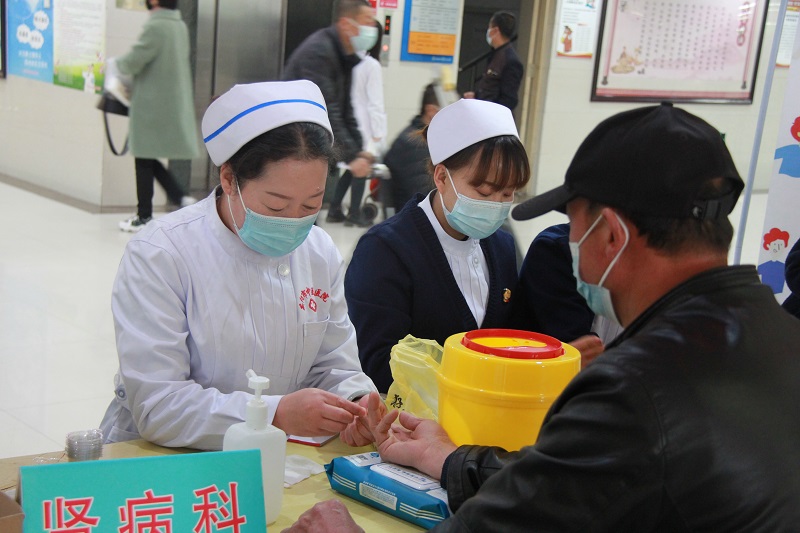 3月11日上午,腎病科在醫(yī)院門診一樓大廳舉辦大型義診活動,現(xiàn)場為大家免費測血壓、血糖,免費做尿常規(guī)檢查,宣講腎病相關知識,派發(fā)健康教育資料?;顒赢斕欤塾嫗?00余名患者測量血壓血糖,為100名患者進行尿常規(guī)檢查。