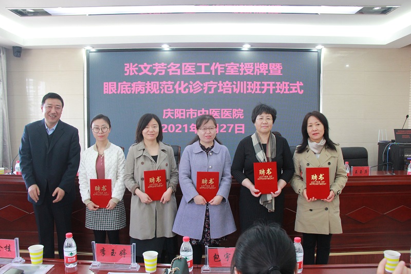 在授牌儀式上,市衛(wèi)健委黨組書記、主任鄧莉娟致辭并為張文芳名醫(yī)工作室授牌。市中醫(yī)醫(yī)院院長袁岳鵬為張文芳、王玉萍、孫莉、楊義、李玉婷等5位特邀專家頒發(fā)聘書。副院長李棟主持,來自平涼、慶陽兩市近百名眼科工作人員參加。