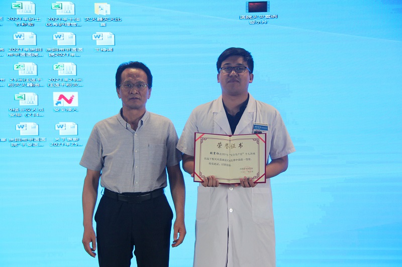 培訓(xùn)開始前,副院長(zhǎng)朱明霞宣讀了《關(guān)于表彰2021年25米往返干粉滅火器油盆滅火比賽獲獎(jiǎng)個(gè)人的決定》,對(duì)在上周舉辦的25米往返干粉滅火器油盆滅火比賽中取得優(yōu)異成績(jī)的腦病科張震鈺等9人進(jìn)行了表彰,副院長(zhǎng)胡勝根、唐秀琴、李棟分別為獲獎(jiǎng)個(gè)人頒獎(jiǎng)。