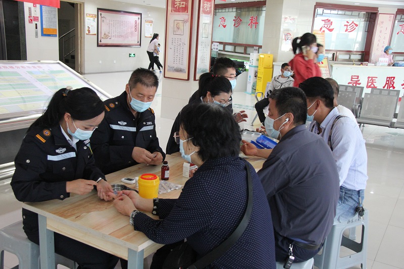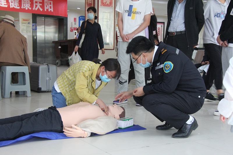 活動現(xiàn)場,急診科工作人員從心肺復蘇術的現(xiàn)場評估、脈搏檢查等復蘇前準備和具體操作過程進行了全面講解,并搬出“模擬人”,對胸外按壓、人工呼吸等重點操作進行動作分解,逐一演示,同時邀請圍觀群眾親自上手體驗,手把手進行教學。工作人員還為群眾測量血壓、血糖,開展咨詢問診,普及急救及各類健康知識。