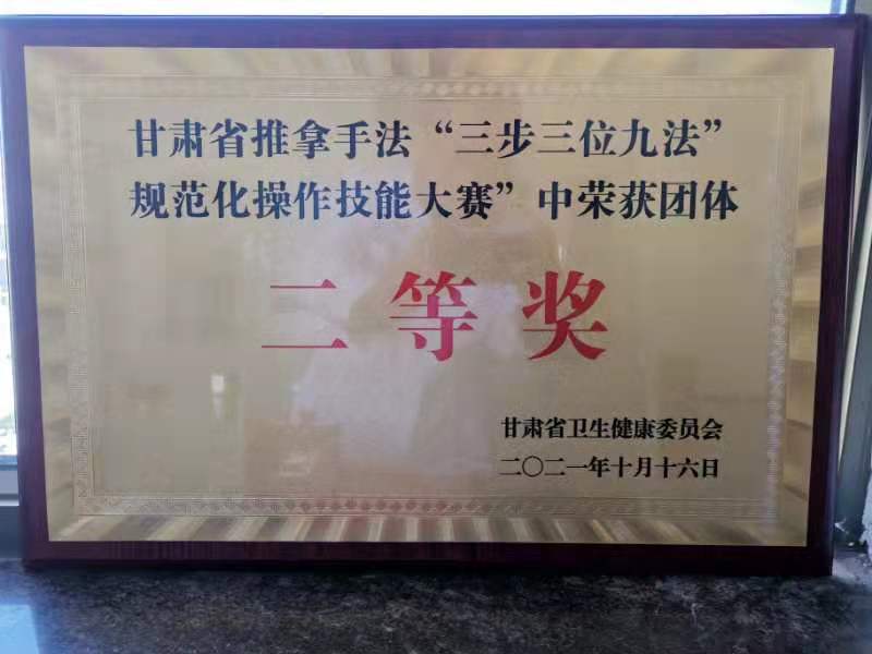 我院喜獲甘肅省推拿手法“三步三位九法”規(guī)范化操作技能大賽團(tuán)體二等獎(jiǎng)時(shí)間:2021-10-29 07:21:59 來(lái)源:admin 閱讀:3291