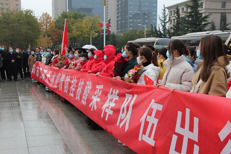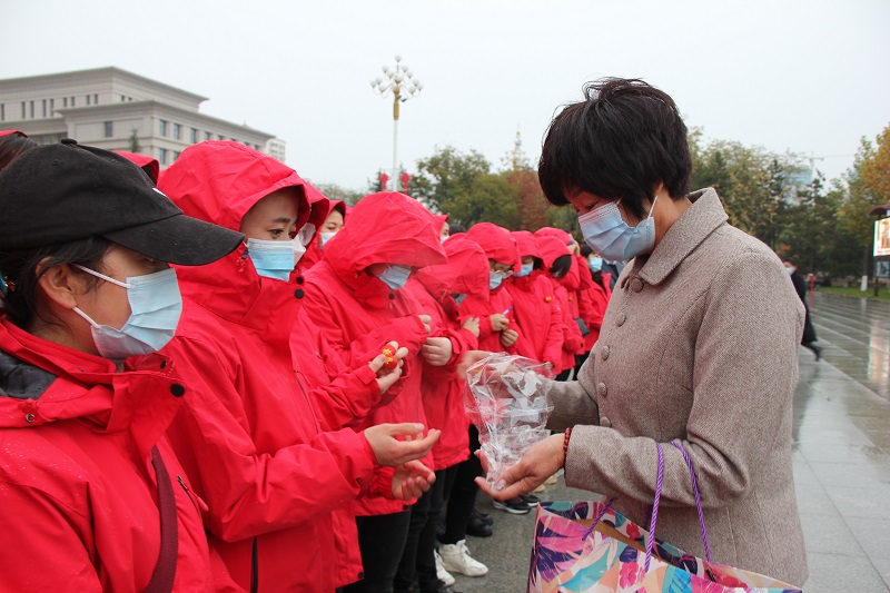 11月1日下午,我市核酸采樣隊(duì)伍,在和諧廣場集結(jié),馳援天水市麥積區(qū)。愛心人士毛麗嫻女士,將親手縫制的500枚香包贈(zèng)送給每一位抗疫人員,送上暖暖的愛心,助力疫情防控。