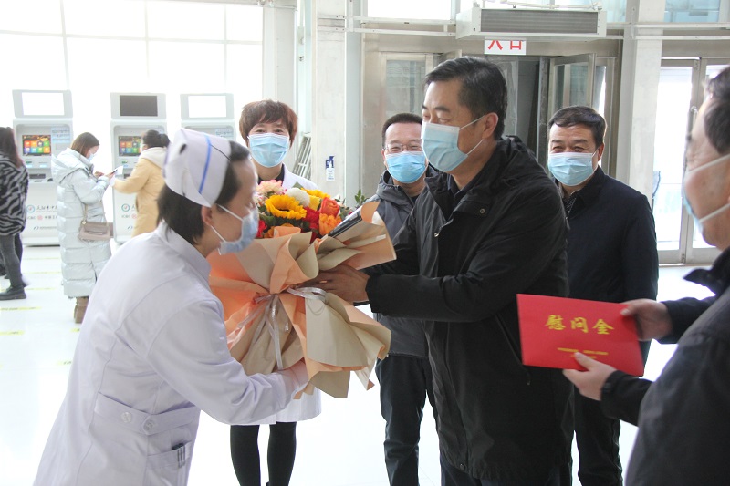 新春佳節(jié)臨近,年味漸濃,節(jié)前慰問活動拉開序幕。一句問候,一份關懷,彰顯出濃濃真情。1月14日下午,市委常委、統(tǒng)戰(zhàn)部部長尚科鋒代表市委市政府慰問我院醫(yī)護人員代表、肛腸一科護士長丑紅。尚科鋒為丑虹送上鮮花,詳細了解她去年支援蘭州新區(qū)及日常工作、生活情況,希望她在干好本職工作的同時注意身體,以更好狀態(tài)投入新一年的工作。