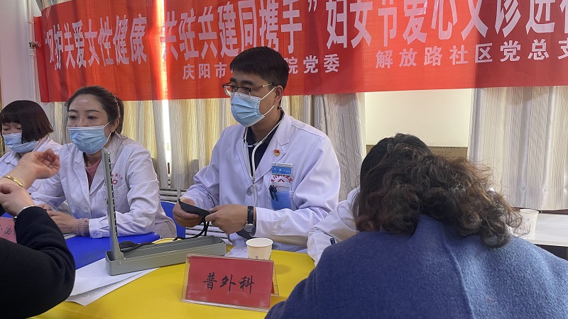 3月5日、6日,在第112個“三八”國際勞動婦女節(jié)來臨之際,市中醫(yī)醫(yī)院黨委攜手西峰區(qū)解放路社區(qū)以“關愛女性健康 攜手共駐共建”為主題,由黨委委員、副院長張鑫智同志帶隊,黨員代表、臨床醫(yī)師志愿者16人同解放路社區(qū)共同開展婦女節(jié)愛心義診活動,現(xiàn)場服務500余人次,發(fā)放健康宣傳彩頁數(shù)百份。