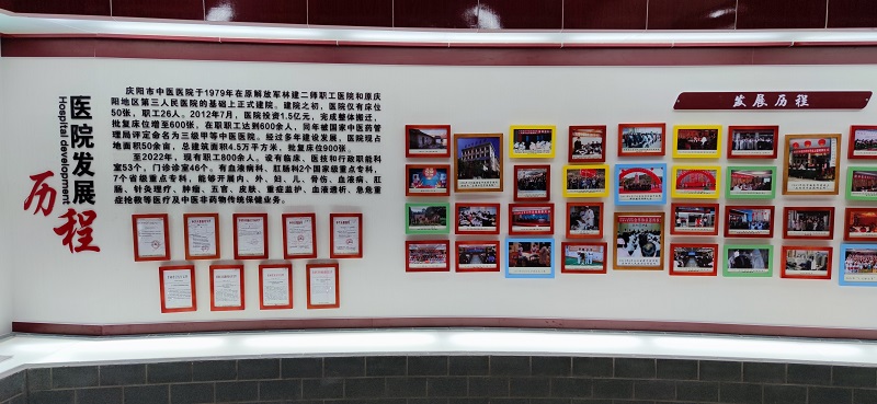 市中醫(yī)醫(yī)院院史館為2012年醫(yī)院整體搬遷時(shí)修建,位于醫(yī)院綜合樓6樓東側(cè),面積400余平方米,建成后迅速成為醫(yī)院對(duì)外交流、展示形象的重要基地,也是來(lái)院參觀學(xué)習(xí)考察的必到之地。歷經(jīng)10年,醫(yī)院發(fā)展日新月異,院史館個(gè)別展板出現(xiàn)破損掉落、發(fā)黃等現(xiàn)象,也缺失了醫(yī)院高速發(fā)展的近十年史,亟待更新。經(jīng)過(guò)修繕改造,院史館必將成為醫(yī)院回顧歷史、傳承文化的重要窗口,對(duì)于提升醫(yī)院的對(duì)外形象意義重大。