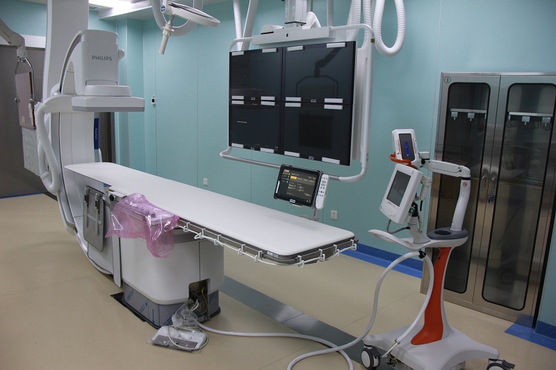 介入醫(yī)學(xué)科負責(zé)人馮永剛匯報科室籌建情況。市中醫(yī)醫(yī)院介入醫(yī)學(xué)科位于住院部一樓東側(cè),設(shè)置標(biāo)準(zhǔn)介入手術(shù)間、操作室、辦公室、談話間、更衣室及耗材庫房等。安裝荷蘭西門子公司最新款超大平板數(shù)字減影血管造影系統(tǒng)( Azurion 7M20 ),并配備心電監(jiān)護儀、ACT、除顫儀、有創(chuàng)壓檢測等配套系統(tǒng)。全套系統(tǒng)純原裝進口,具有輻射低、操控性強,圖像質(zhì)量好等優(yōu)勢,可支持開展多種微創(chuàng)介入手術(shù)。科室暫有醫(yī)師3名,其中副高級職稱1名、中級職稱2名,專業(yè)護理人員1名,技師1名,主要開展外周血管、腫瘤、心臟的介入診療項目,后續(xù)將派專人赴上級醫(yī)院進修學(xué)習(xí)神經(jīng)內(nèi)科的介入治療技術(shù)。