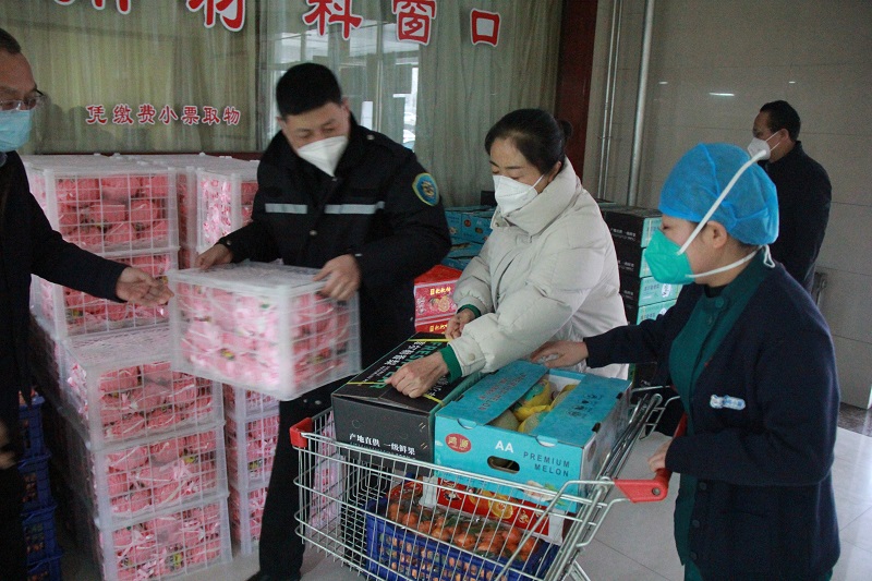 上午八點(diǎn)半,住院部一樓大廳格外熱鬧,值班值守的醫(yī)護(hù)人員推著小推車在這里集結(jié),不同的是這次不再是忙碌地運(yùn)送藥品耗材,而是接收醫(yī)院的關(guān)懷和甜蜜。在院黨委書記、院長袁岳鵬,副院長胡勝根、朱明霞、李棟、開金龍的組織下,一箱箱春節(jié)慰問水果被大家搬回了科室。這一延續(xù)多年的傳統(tǒng),旨在讓春節(jié)期間值班值守人員在可以在工作空檔,感受到醫(yī)院的溫暖。