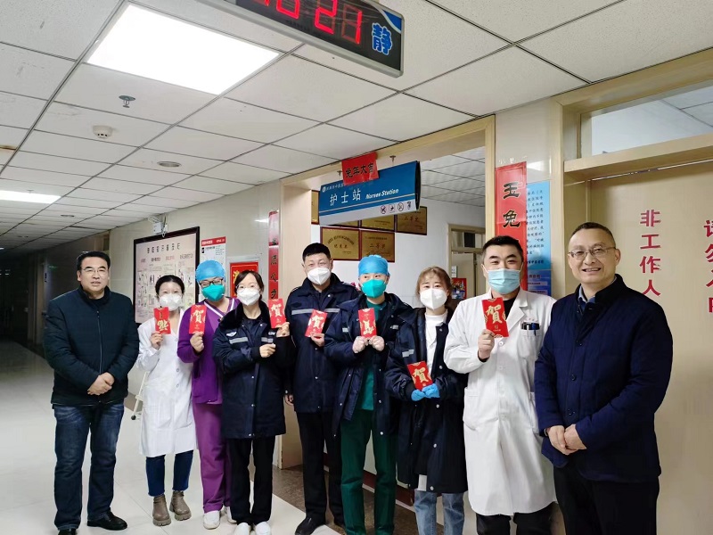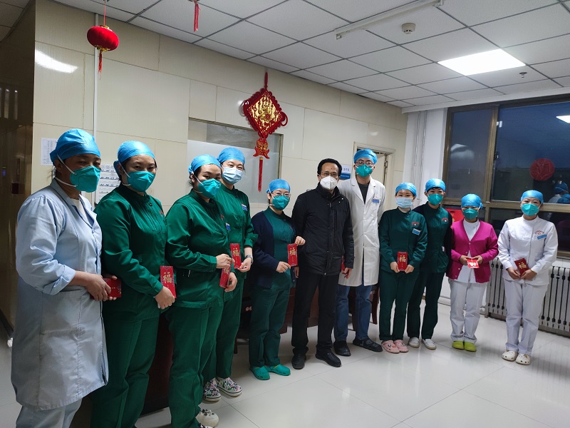 晚上六點(diǎn),院班子成員又分組帶領(lǐng)相關(guān)科室工作人員,深入醫(yī)院各科室、各崗位,看望慰問除夕夜仍然堅(jiān)守的職工,為他們送上代表新春祝福的紅包,感謝他們今夜的堅(jiān)守,希望他們站好最后一班崗,也過一個(gè)愉快祥和的春節(jié)。