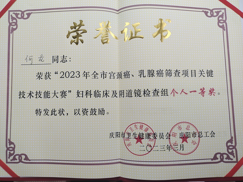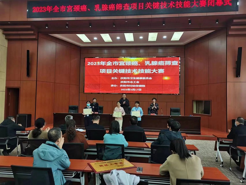 3月17日,在2023年全市宮頸癌、乳腺癌篩查項(xiàng)目關(guān)鍵技術(shù)技能大賽中,我院代表隊(duì)表現(xiàn)優(yōu)異,摘得“團(tuán)體一等獎(jiǎng)”、婦科臨床及陰道鏡檢查組“個(gè)人一等獎(jiǎng)”、宮頸細(xì)胞及組織病理組“個(gè)人二等獎(jiǎng)”等多個(gè)獎(jiǎng)項(xiàng)。