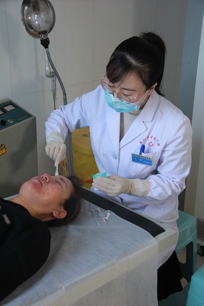 王蕾,1990年出生,2014年畢業(yè)于云南中醫(yī)藥大學(xué)中西臨床專業(yè),現(xiàn)為慶陽市中醫(yī)醫(yī)院皮膚科主治醫(yī)師,擅長中西醫(yī)結(jié)合治療痤瘡、濕疹、各類蕁麻疹、瘀積性皮炎、銀屑病、黃褐斑等皮膚類疾病。在和同事積極研究治療疑難皮膚病的同時(shí),還在科室開展了一系列美容治療,尤其開展的果酸換膚術(shù),對(duì)于中重度座瘡有明顯作用。