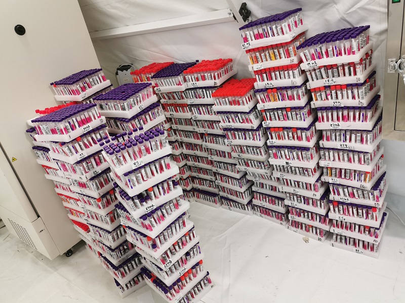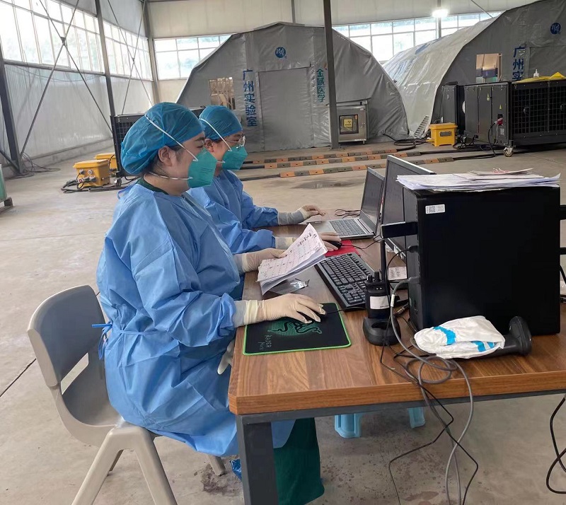 王翔雲(yún)負(fù)責(zé)檢測信息的上傳工作,每隔一小時(shí)王翔雲(yún)就要統(tǒng)計(jì)氣膜艙的檢測進(jìn)度,對“已上機(jī)”和“已下機(jī)”的標(biāo)本信息分類統(tǒng)計(jì),陰性結(jié)果及時(shí)上傳,陽性結(jié)果匯總上報(bào)。每個(gè)班次上萬管的標(biāo)本信息都要一個(gè)一個(gè)核對、統(tǒng)計(jì)和上報(bào)。由于信息上報(bào)是最后一個(gè)步驟,每次都是等待檢測人員完成所有的標(biāo)本,上傳完所有的信息之后,王翔雲(yún)才能拖著疲憊的身軀離開工作崗位。